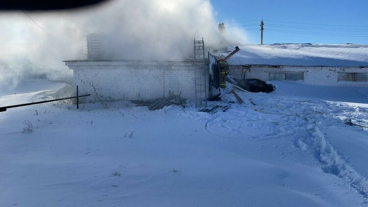 Огнем была повреждена котельная фермы на площади 20 кв. метров.