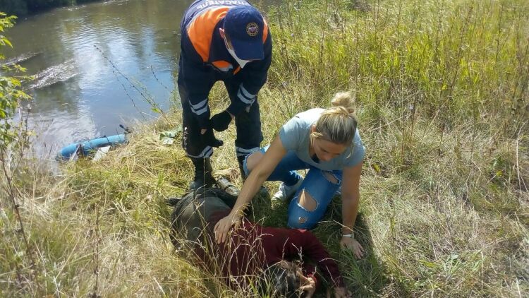 Прибывшие по вызову спасатели на лодке подплыли к пожилой женщине, которую к тому моменту унесло на 250 метров от места падения. Они подняли бабушку без сознания на борт и доставили на берег.
