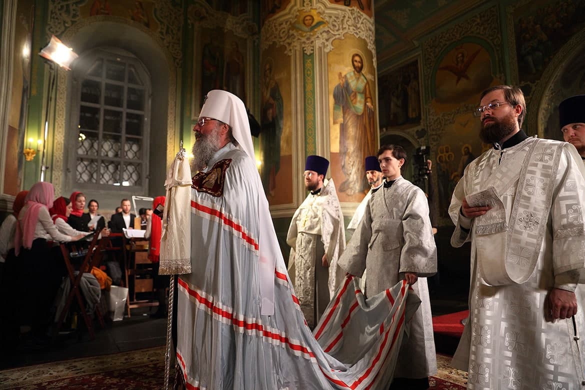 «За четыре с половиной века 461-я Пасха в этом соборе сегодня завершается. Какое счастье, что мы в этом намоленном благословенном Божьем доме собрались сегодня», – обратился правящий архиерей к прихожанам.
