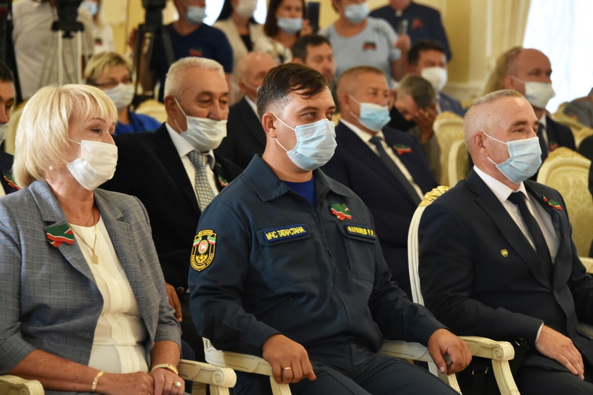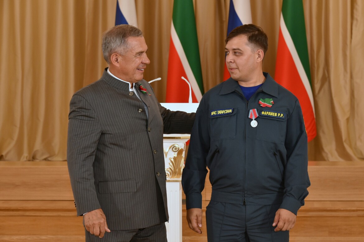 Сегодня, в преддверии Дня республики Татарстан, в Казанском Кремле Президент РТ вручил госнаграды РФ и республики более чем 50 татарстанцам. В их числе Рамиль Фардиев, начальник отдельного поста противопожарной службы по охране села Биклянь Тукаевского района челнинского отряда противопожарной службы ГКУ РТ «Пожарная охрана РТ».