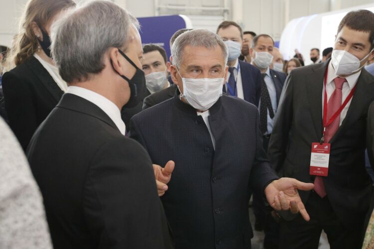 Минниханов на выставке осмотрел стенды ведущих татарстанских предприятий и организаций. Высокой делегации презентовали экспозиции ОЭЗ «Алабуга», Университета Иннополис, технополиса «Химград» и другие.
