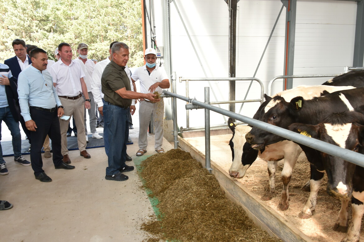 В рамках своего визита Президент РТ посетил крупные сельскохозяйственное и промышленное предприятия. Первое из них, это молочный комплекс ООО «АФ им. Гаврилова». На сегодня здесь построен коровник на 600 голов КРС с доильным залом, родильным отделением и необходимой инфраструктурой: дизбарьером, санпропускником, водонапорной башней, подъездной дорогой и освещением. Когда поголовье нарастят до 1200 единиц, то смогут производить до 10 тыс. тонн молока в год.