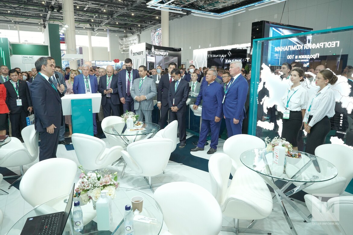 После вступительных слов Президент Татарстана и гости форума посетили выставку. Им показали экспозиции, состоящие из современных инновационных технологий и оборудования, а также новейших разработок предприятий нефтегазохимического комплекса в области нефтедобычи, нефтепереработки и нефтехимии.