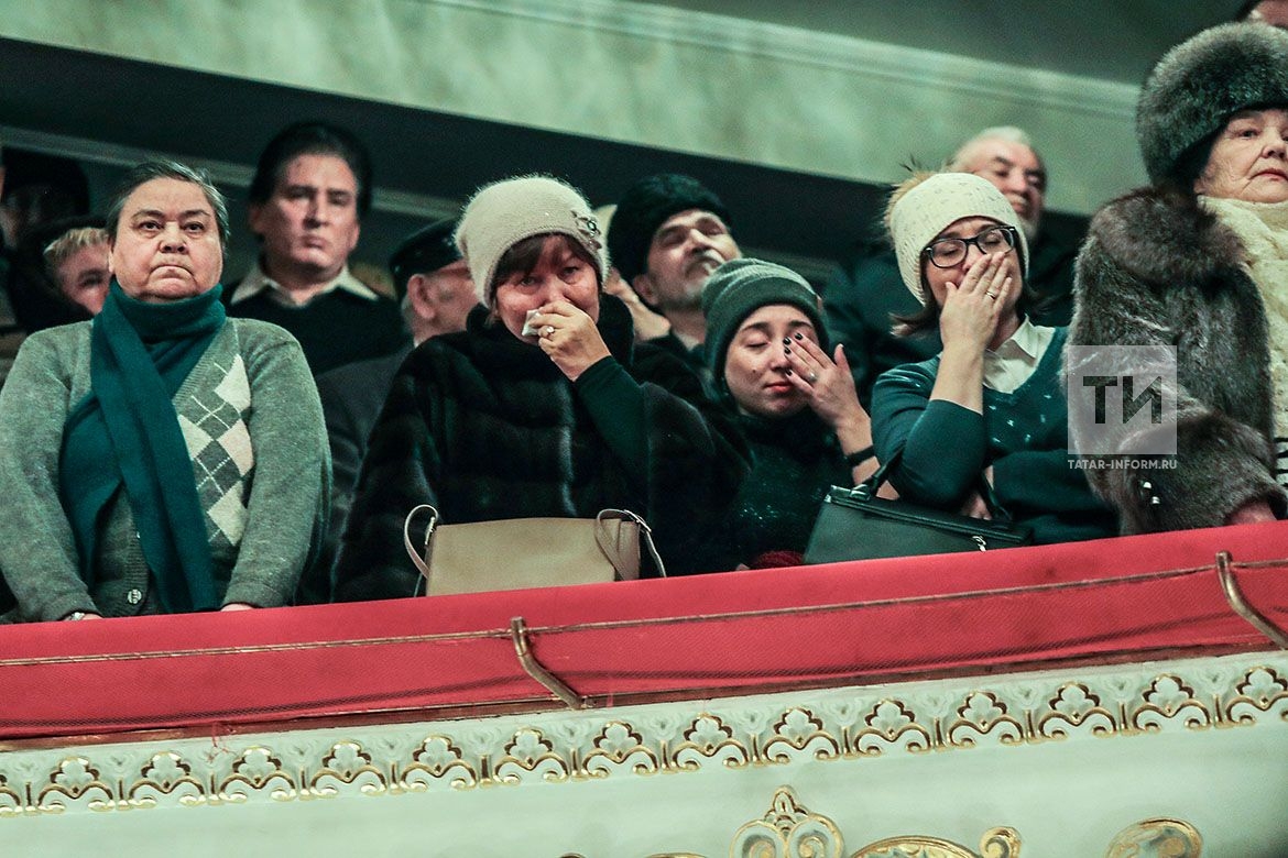 Гражданская панихида прошла в Татарском театре оперы и балета имени Мусы Джалиля в Казани. С 9 часов утра в зал театра, на сцене которого установлен постамент с телом покойного, нескончаемым потоком шли люди. Они проходили, ненадолго задерживаясь у постамента, клали рядом с телом алые гвоздики. Многие остались в ожидании прощальных речей. Зал театра, включая верхние ярусы, был заполнен до отказа.