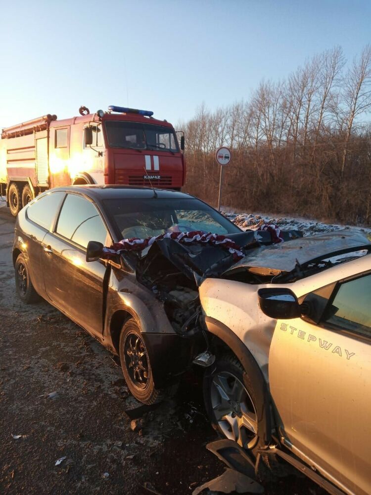 На 43-м километре трассы в Высокогорском районе РТ лоб в лоб столкнулись «Форд Фокус» из свадебного кортежа и «Рено Логан».