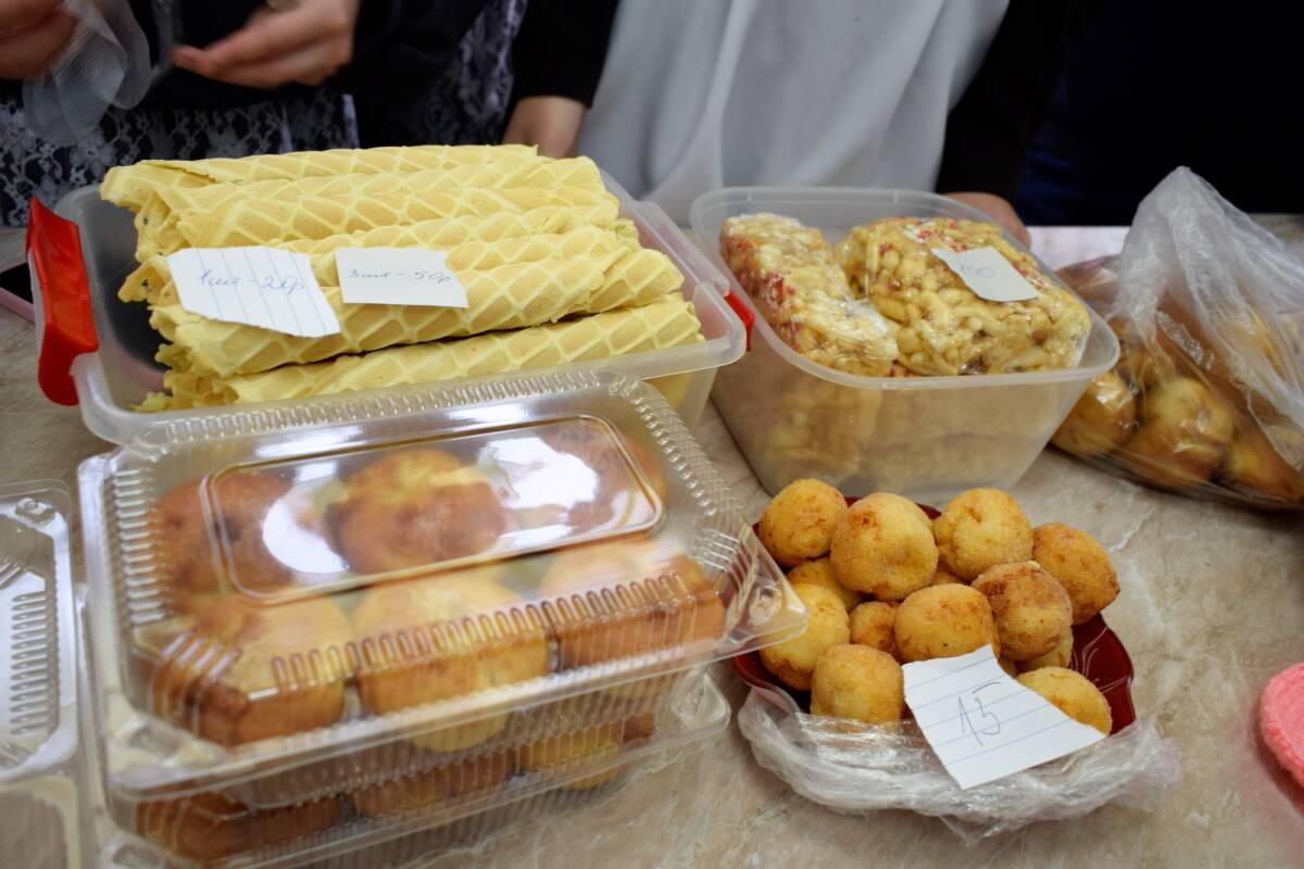 Учащиеся предлагали торты, кексы, блины, домашнее печенье, трубочки, треугольники и многое другое, всё это выглядело очень вкусно и аппетитно.