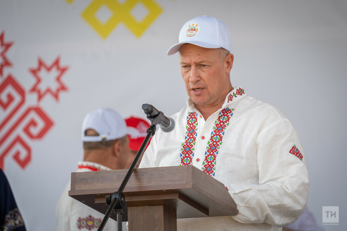Затем на сцену вышел депутат Государственного Совета РТ Марат Ахметов. Он поприветствовал гостей праздника на трех языках: русском, татарском и чувашском. «В Татарстане проживает более 170 национальностей, и каждая из них составляет красивый цветок национального букета народов Татарстана. У каждого народа есть свой праздник, который воплощает его историю и обычаи», - отметил Ахметов.