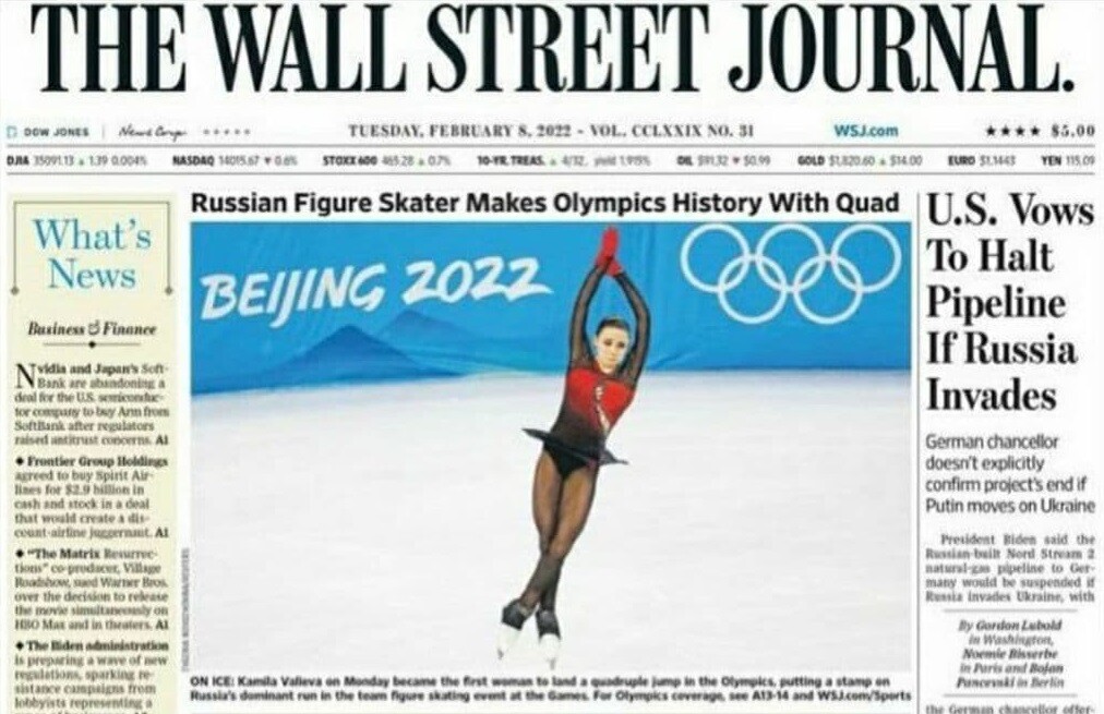 Авторитетное издание The Wall Street Journal признало выступление Камилы Валиевой в командном турнире по фигурному катанию на Олимпиаде в Пекине новостью дня.