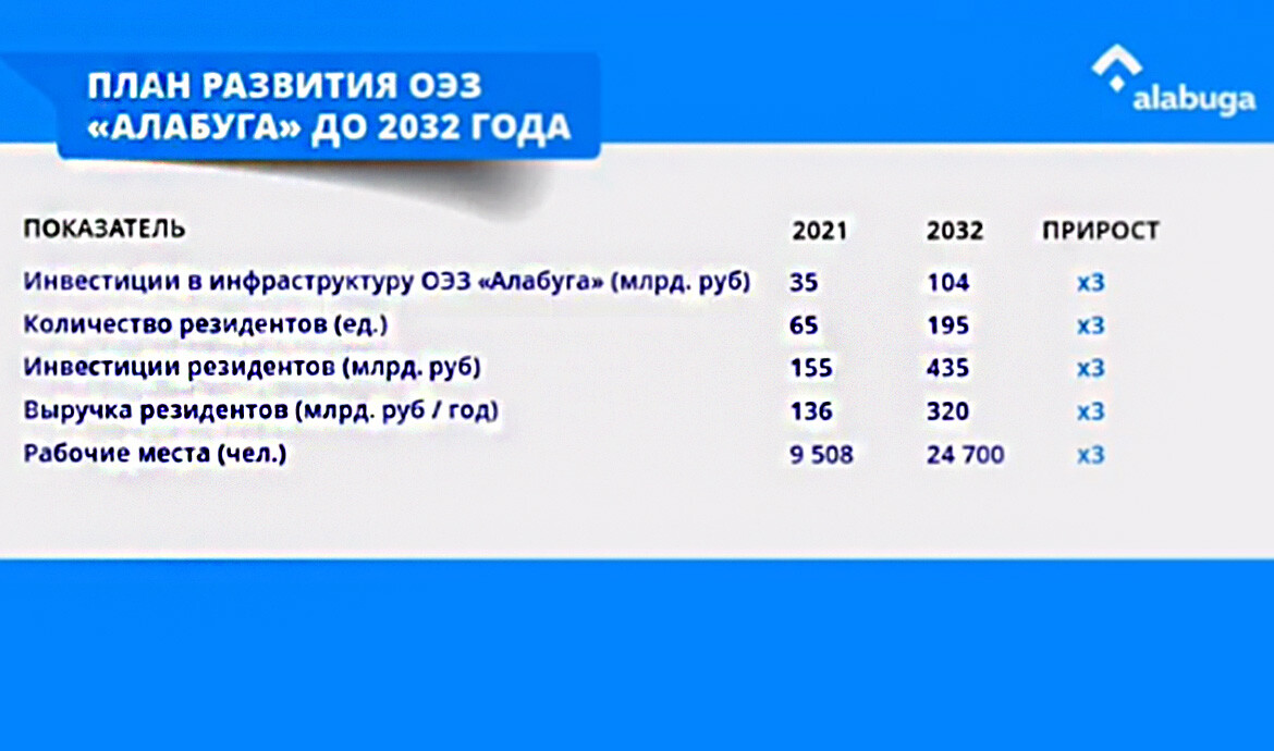 Пока в ближайших планах ОЭЗ до 2032 года рост количества резидентов с 65 до 195, инвестиций - до 435 млрд рублей, выручки – до 320 млрд рублей. Через 10 лет в «Алабуге», как ожидается, будет создано 24,7 тыс. рабочих мест.