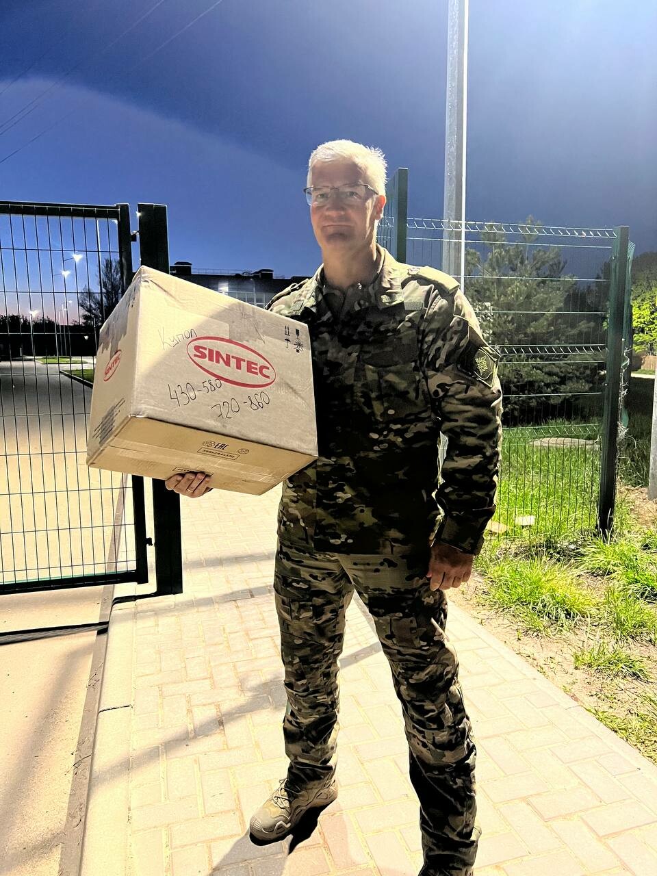 Один из коптеров был передан бойцу из разведроты Дмитрию Дементьеву, который побывал дома в краткосрочном отпуске. Также ему передали систему защиты от дронов.