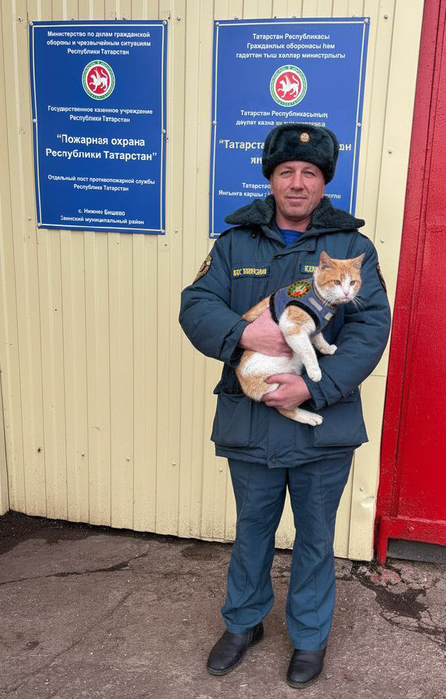 В 2023 году в селе Средние Пенячи Заинского района произошел пожар в нежилом доме. При тушении огня пожарные отдельного поста Нижнее Бишево Нижнекамского отряда противопожарной службы обнаружили раненого кота. Не раздумывая, они забрали его с собой, чтобы помочь обрести новый дом.