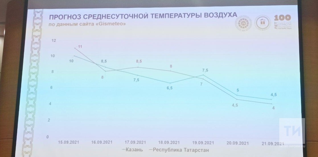 В соответствии с нормативами тепло в дома жителей Татарстана начнут подавать примерно 22 сентября. Это следует из прогноза среднесуточной температуры воздуха, который был представлен сегодня на брифинге в Доме Правительства РТ, посвященном готовности объектов социальной и жилищно-коммунальной сферы к отопительному периоду 2021–2022 годов.