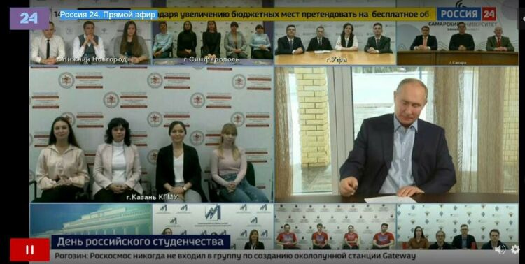 Мероприятие было приурочено ко Дню российского студенчества. В онлайн-встрече с главой государства приняли участие студенты из восьми городов страны.