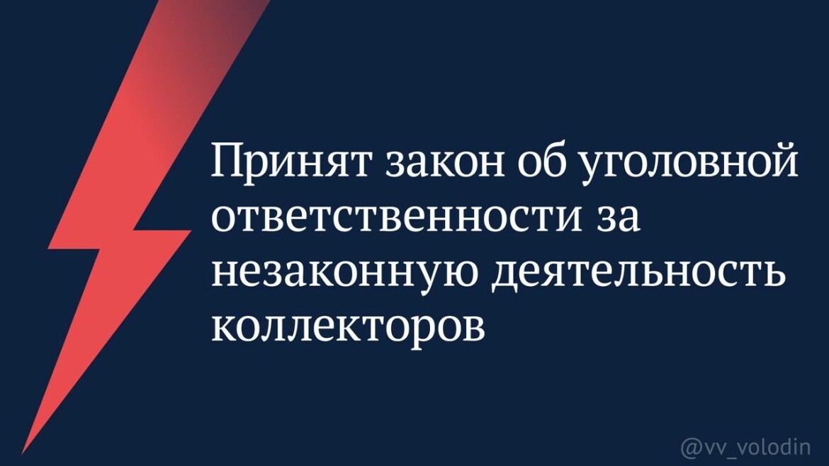 «Это решение защищает наших граждан, которые оказались в трудной жизненной ситуации. Беспределу коллекторов положен конец», – прокомментировал окончательное одобрение закона председатель Госдумы Вячеслав Володин, отметив, что инициативу поддержали 97% голосовавших депутатов.