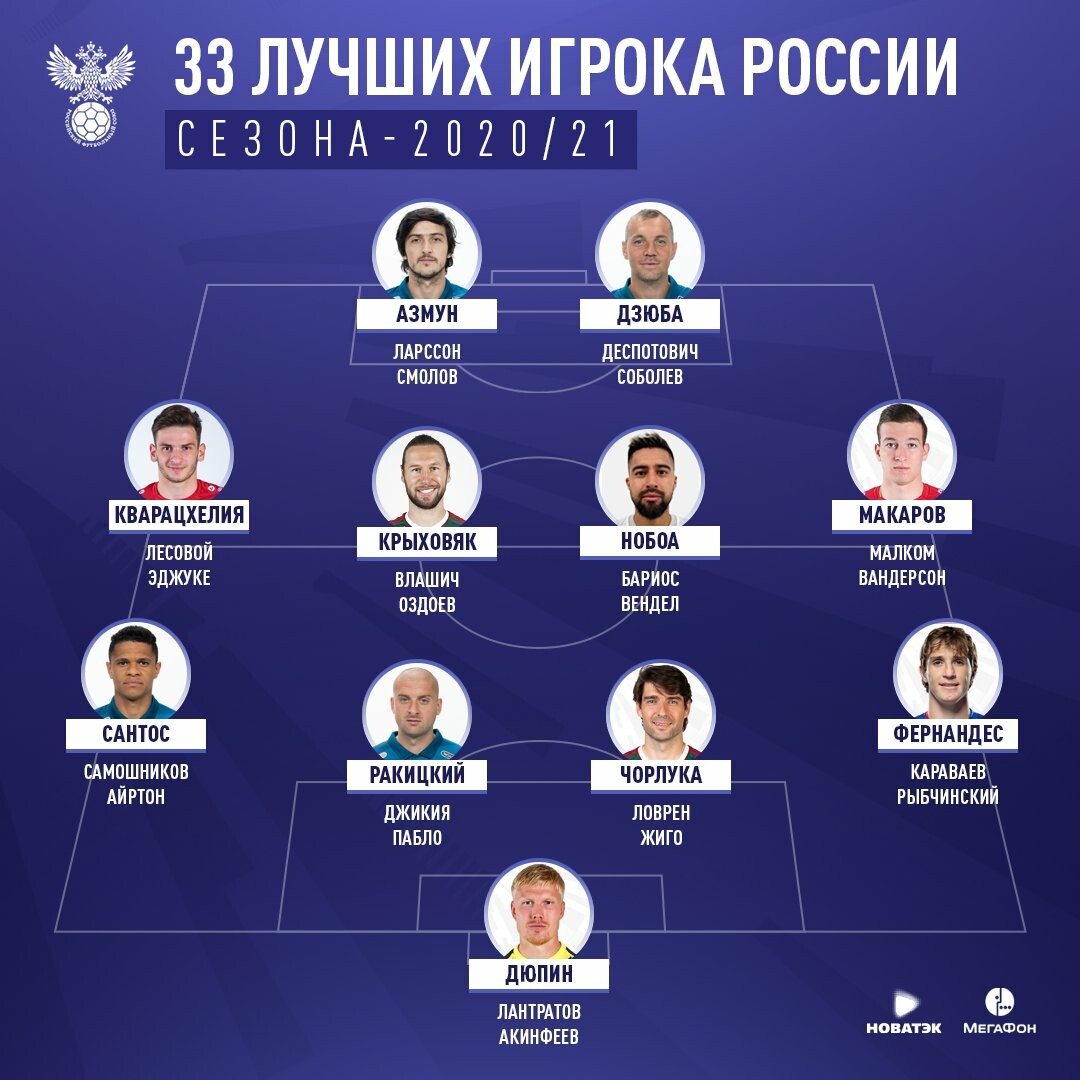 Три игрока были признаны лучшими на своих позициях. Это голкипер Юрий Дюпин, левый атакующий полузащитник Хвича Кварацхелия и правый хавбек Денис Макаров.