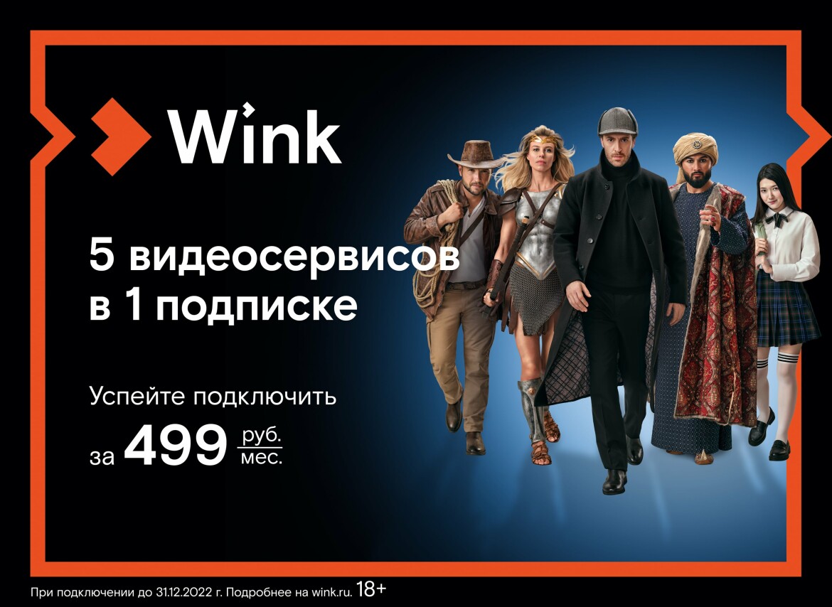Wink (цифровой видеосервис «Ростелекома») проводит акцию «5-в-1» — это отличная возможность оформить единую подписку на пять топовых онлайн-кинотеатров по цене в два раза ниже, чем общая стоимость подключения каждого из них по отдельности.