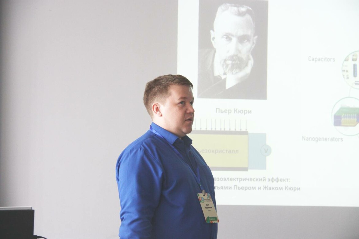 Азат Нургалеев в команде со студентами-физиками представил макет датчика вибраций на основе пьезоэлектрических полимеров. Кроме того, участники предложили модернизовать датчик, установив на него Wi-Fi адаптер, что позволит передавать информацию о возникших вибрациях в режиме реального времени. Работа команды вызвала большой интерес у участников школы и экспертного жюри.
