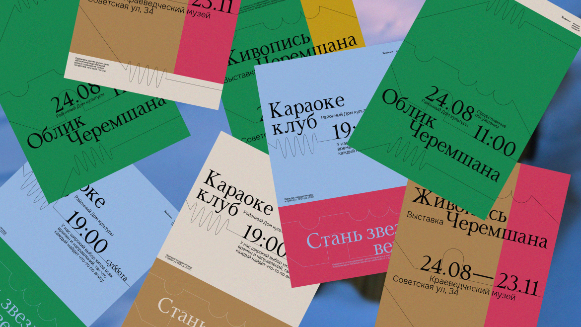 Таким образом, деление на цветовые блоки символизирует стык разных культур, присутствующих в Черемшане. А основу графического приема — четыре линии-паттерна — составили символы и смысловые образы населенного пункта: Черемшанская крепость, вода и родники, земля и плодородие, граница.