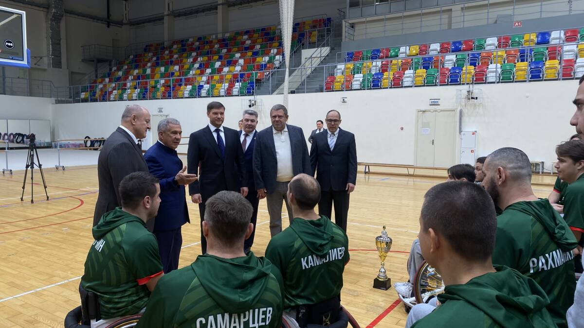 Сегодня Раис РТ Рустам Минниханов встретился с чемпионами России по баскетболу на колясках «Крыльями Барсов». Встреча прошла в Казани в спортивном комплексе «Тулпар».