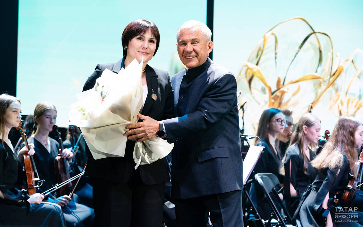 Раис Татарстана Рустам Минниханов вручил государственные награды многодетным матерям в новом здании театра им. Г. Камала накануне Международного женского дня.