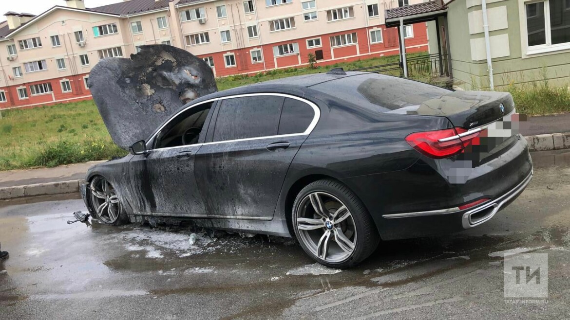 Рано утром под Казанью сгорел припаркованный у дома BMW