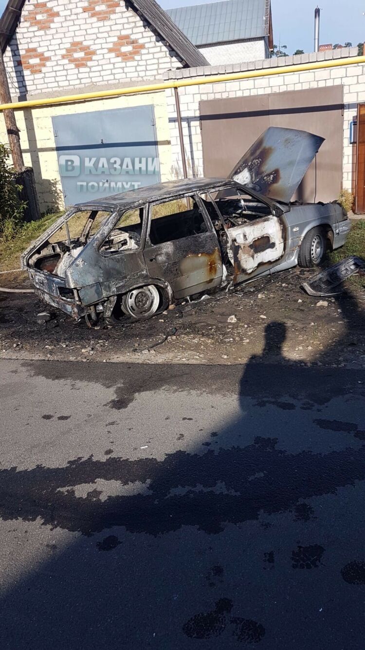 Рано утром в Казани из-за замыкания в фаре сгорела легковушка