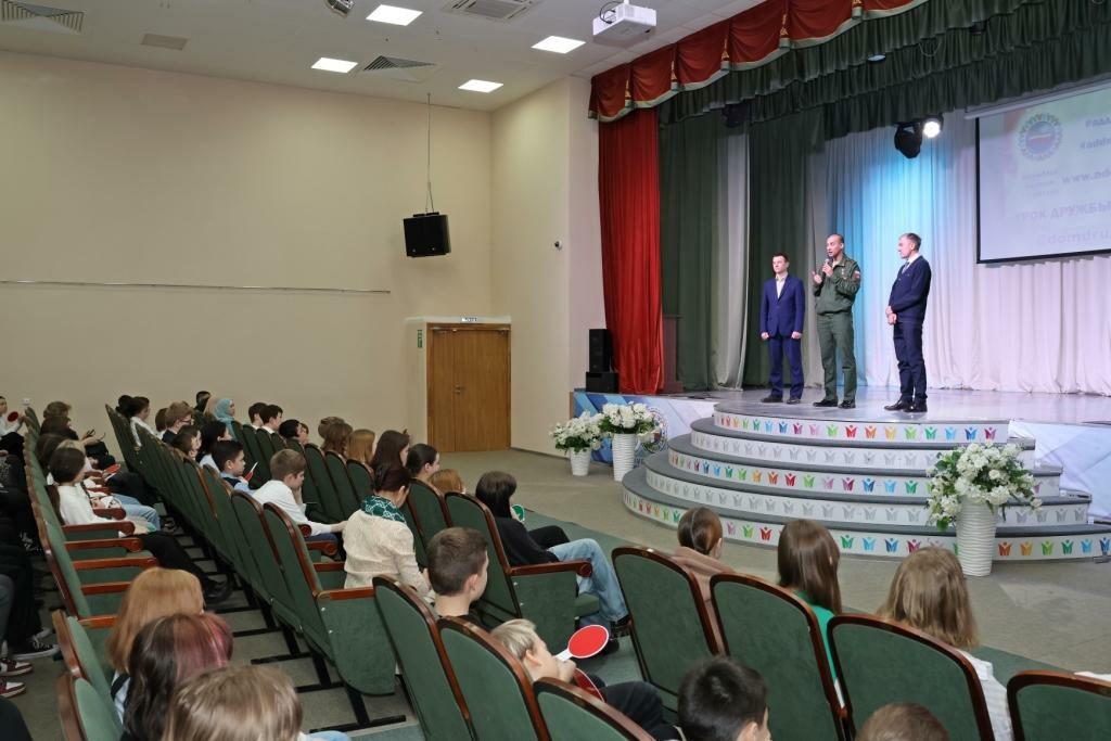 Во время экскурсии Герой России попал на занятия по проекту для школьников «Уроки Дружбы и согласия». Данный проект реализуется на базе Дома Дружбы с 2016 года. За время его проведения о деятельности национально-культурных автономий Ассамблеи народов РТ, о народах, проживающих в республике и важности сохранения мира и согласия обществе, узнали более 40 тысяч школьников.