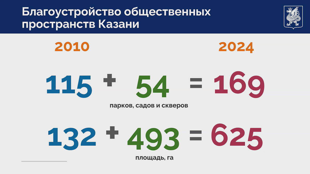 На 2024 год площадь благоустроенных общественных пространств составляет 625 га.
