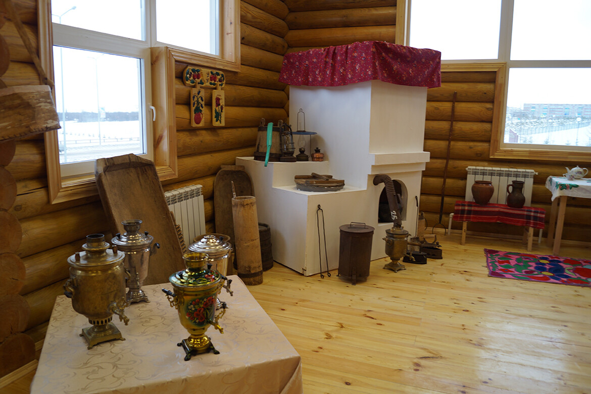 Экспонируются изделия валяной фабрики — валенки с «мушками» (то есть вышитые), а также самовары, кумганы, медные подносы мастерской Володиных производства 1870-1890 годов.