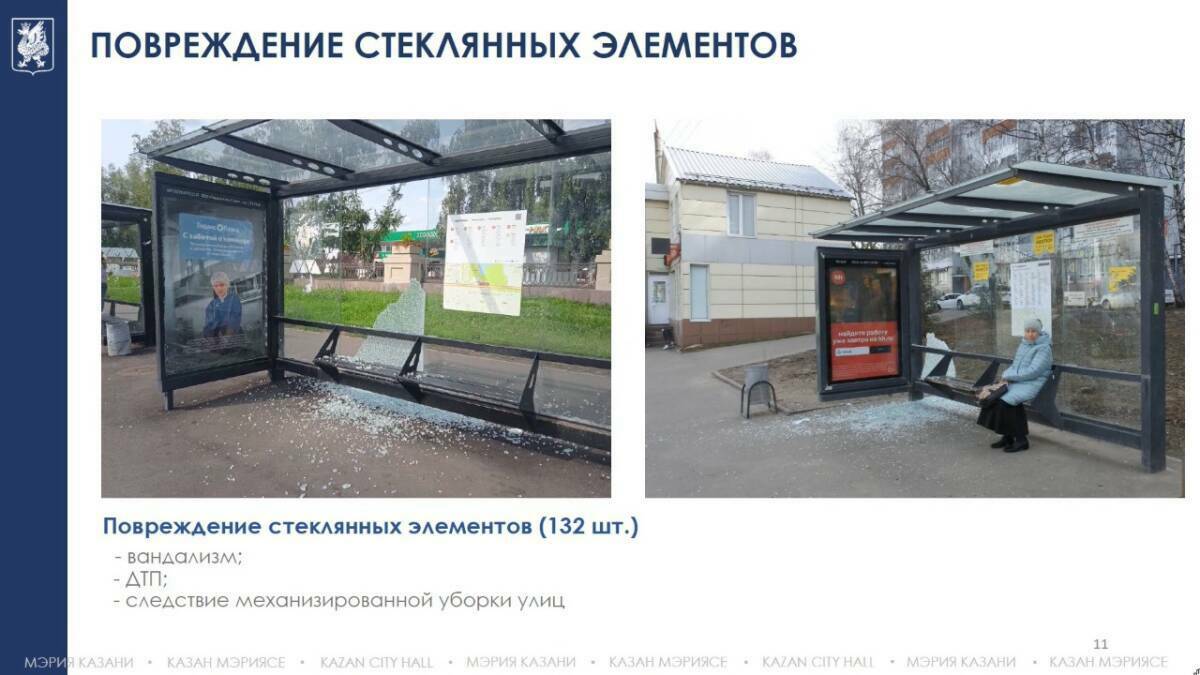 Багаутдинов также отметил, что участились случаи вандализма. В прошлом году вандалы разбили и изрисовали граффити 132 стекла на остановочных комплексах, а за первый квартал 2025 года повреждено уже 59 стекол. Ремонт выполняется за счет рекламных компаний.