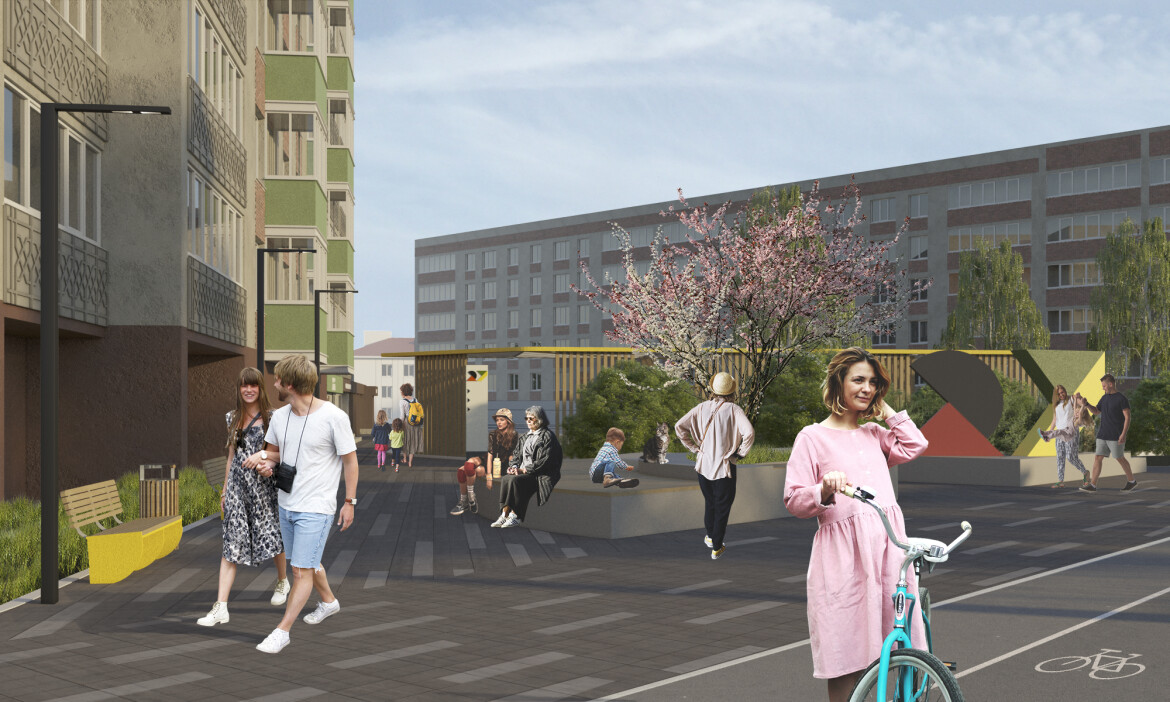 «Задачу помогло решить грамотное функциональное зонирование и выявление того, какое именно решение принесет больше пользы и позволит учесть больше нужд. Так, мы выявили, что основные пользователи территории — это дети. В микрорайоне расположены школа и детский сад. Здесь учатся и местные дети, и ребята с прилегающей территории. Поэтому большая часть территории была наделена спортивно-игровой функцией. Мы создали пространства, где „шумные“ зоны, интересные гостям города и микрорайона, переходят в зоны для спокойного отдыха местных жителей», — поделился источник.