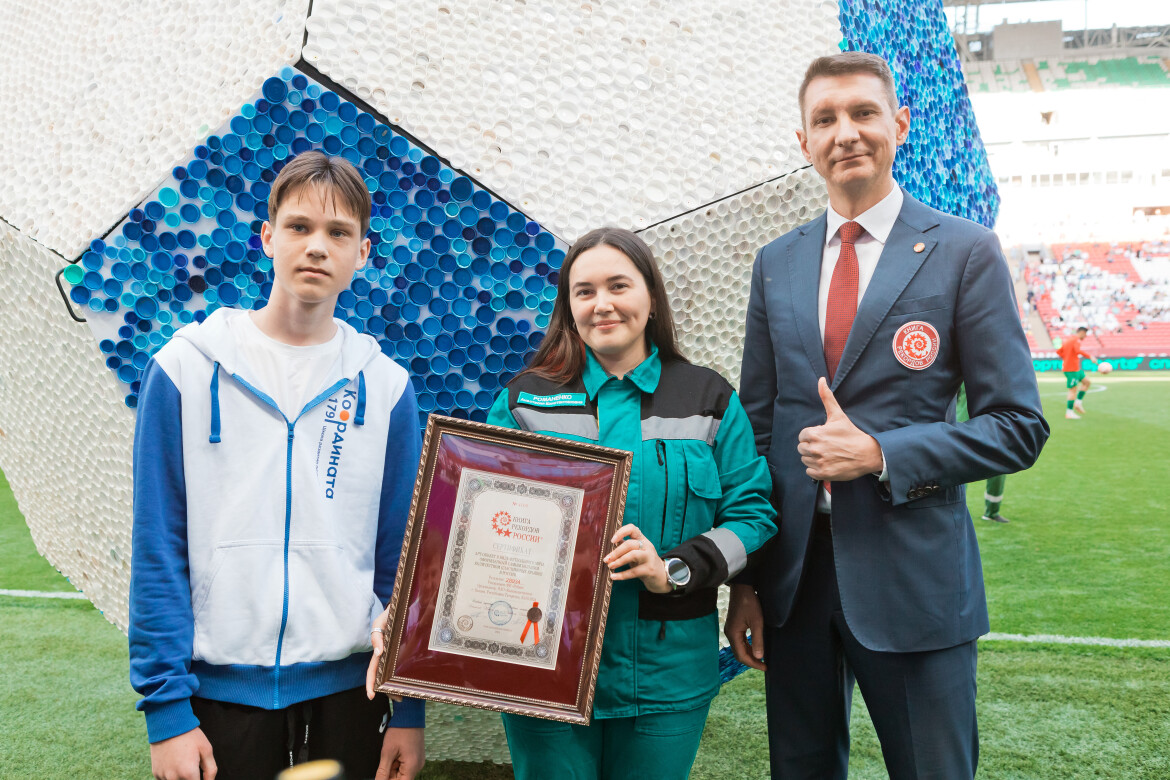 Достижение официально зафиксировала Книга рекордов России. Крышки для его установления вместе с партнером матча — федеральным проектом «Чистые игры» — собирали на экологических городских акциях, в школах и гимназиях Казани, в экобоксах на площадках «Казаньоргсинтеза».