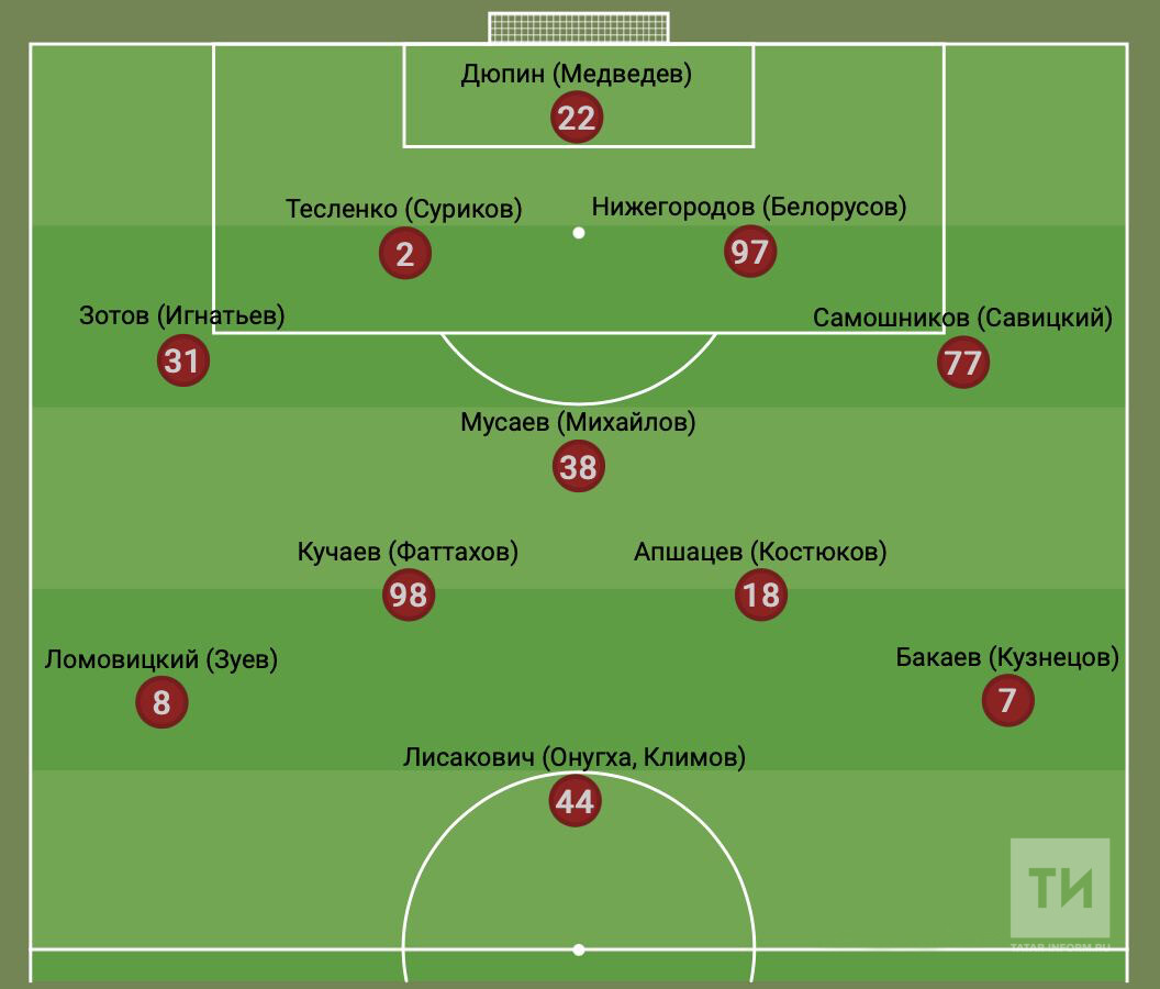 Правый фланг в отсутствие лучшего бомбардира «Рубина» достанется Александру Ломовицкому, что фактически и является его профильной позицией. Выйти освежить красно-белый дуэт флангов смогут Александр Зуев и 18-летний талант академии «Зенита» Даниил Кузнецов.