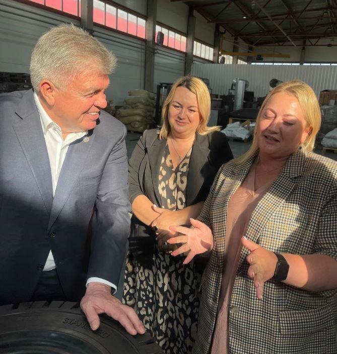 «Глядя на Эльвиру Вальтер и Анну Крохалеву, трудно представить, что эти девушки руководят пусть пока небольшим, но перспективным в будущем заводом — заводом резиновых технических изделий, где изготавливают цельнолитые шины на погрузчики», — сообщил мэр.