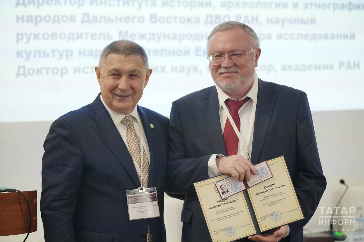 Решая эту важнейшую и во многом глобальную задачу, мы провели в текущем году большой международный симпозиум. Было принято решение создать на базе Академии наук Татарстана «Международный центр исследований истории и культуры народов степной Евразии». Возглавил его академик РАН Николай Николаевич Крадин. Это крупнейший отечественный специалист, почетный академик АН РТ, директор Института истории, археологии и этнографии народов Дальнего Востока ДВО РАН.