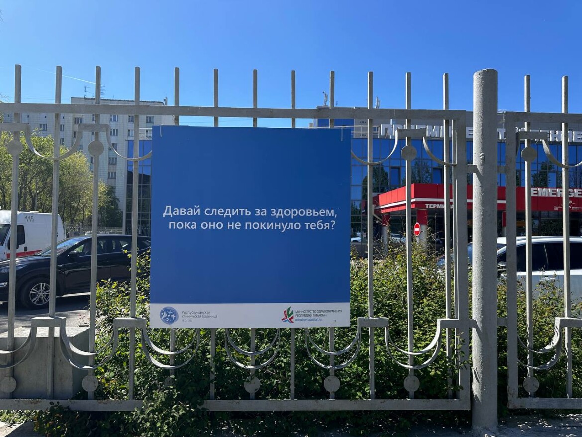 На территории Республиканской клинической больницы Татарстана появились плакаты с призывами следить за своим здоровьем.