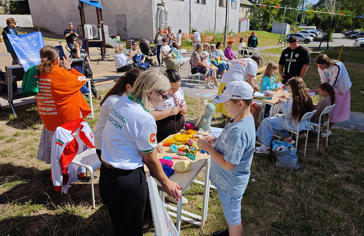 День начался с акции «Культурный десант»: обычное дворовое пространство превратилось в многофункциональную площадку с тематическими станциями – творчества, добра, игр, культуры, профессий и патриотизма.