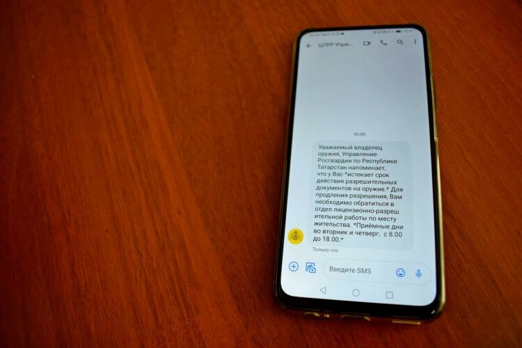 Центр лицензионно-разрешительной работы запустил сервис электронного оповещения. Татарстанцам, у которых до конца действия лицензии на оружие осталось меньше трех месяцев, придут голосовые уведомления и СМС.