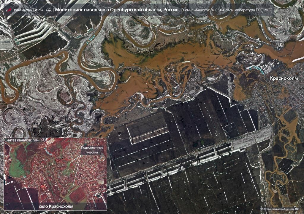Роскосмос показал спутниковые снимки из эпицентра паводка в Оренбуржье