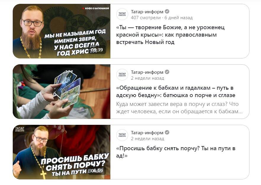 Новым выстрелившим проектом «Татар-информа» стали видеоподкасты «Кофе с батюшкой» и «Чай с хазратом», выходящие по очереди каждое воскресенье. В первом на вопросы «ТИ» отвечает руководитель Миссионерского отдела Казанской епархии иерей Александр Ермолин, во втором – имам казанской мечети «Гаиля» Рустам Хайруллин.