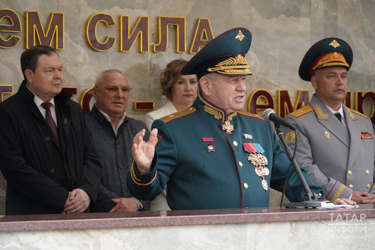 «От имени всего педагогического состава поздравляю вас с окончанием Казанского Суворовского военного училища. Сегодня история училища пополняется именами выпускников 77-го выпуска: одиннадцать медалистов — девять золотых и две серебряные. Я горжусь тем, что многие наши выпускники достойно представляли наше училище на олимпиадах и различных соревнованиях. Сегодня выпускаются четыре кандидата в мастера спорта и сорок два суворовца имеют первый спортивный разряд», — выступил перед собравшимися начальник Казанского суворовского военного училища Валерий Миронченко.