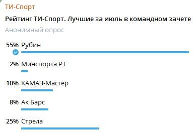 При этом в рейтинге «ТИ-Спорта» первое место так же досталось «Рубину», а третье место – команде «КАМАЗ-Мастер». Однако на втором месте в нашем варианте было Минспорта РТ, а «Стрела-Ак Барс» оказалась на пятой строчке в таблице.