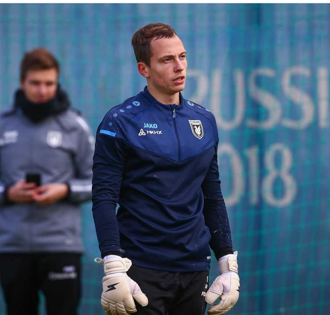 Он выступает на позиции вратаря и уже дебютировал в профессиональном футболе, выйдя на замену в матче Кубка России «Знамя» — «Крылья Советов», где пропустил три мяча.