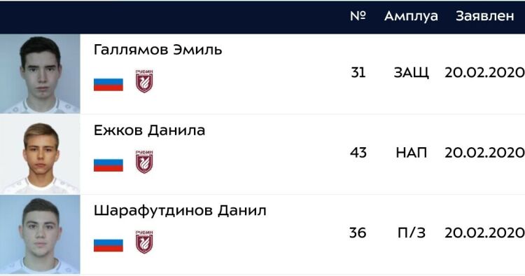 (Казань, 20 февраля, «Татар-информ»). Казанский «Рубин» заявил еще трех игроков в РПЛ для участия в молодежном первенстве.