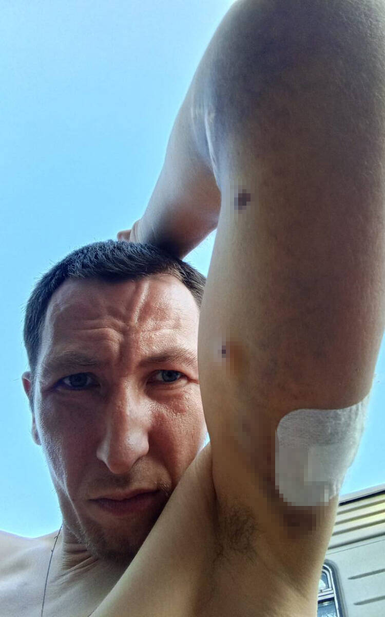 «Когда разорвался третий снаряд, я почувствовал сильный удар по руке, после чего она сразу онемела. Я понял, что четвертый снаряд станет для меня последним. Тогда я успел скомандовать ребятам отойти, зажал пальцем артерию под мышкой и выбежал из посадки. Пробежав 200 метров, я нырнул обратно в лес. Уже там я доложил начальству о том, что случилось, и о полученных ранениях. Мне предстояла эвакуация», – рассказал Ильшат Левин.