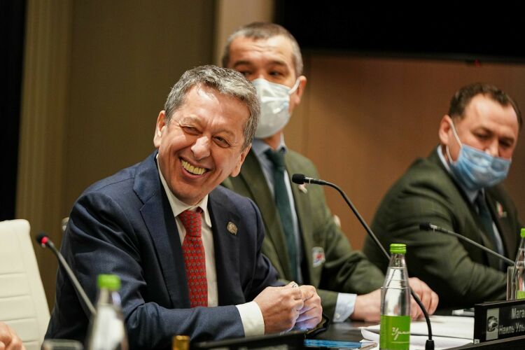 Именинник первым взял слово и, поздравив «Ак Барс» с удачной игрой в регулярном чемпионате КХЛ, пожелал команде успешно выступить в борьбе за Кубок Гагарина.