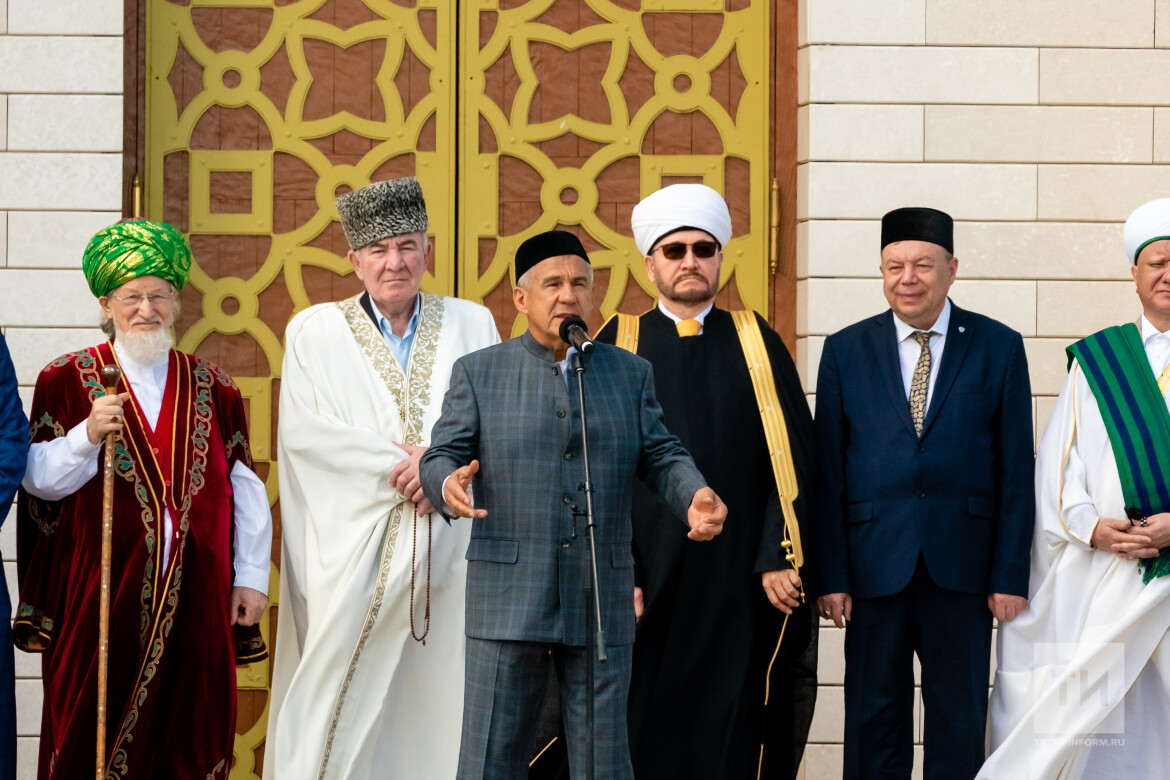 В речи на русском языке Рустам Минниханов заявил, что «религия, традиция живут благодаря нашим уважаемым хазратам, тем, кто проповедует ислам, кто имеет нравственность, понимает, что без религии, без Всевышнего у нас нет никакой перспективы».
