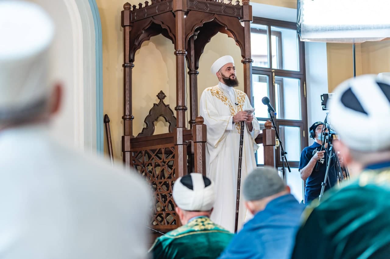 «Единоверцы, разделяющие горе и боль потерявших детей в кровопролитной стрельбе, просящие у Создателя исцеления раненным, в печали провожающие месяц Рамадан и с любовью встречающие Уразу, приветствую вас», — обратился муфтий к собравшимся на праздничный намаз в казанской Галеевской мечети.