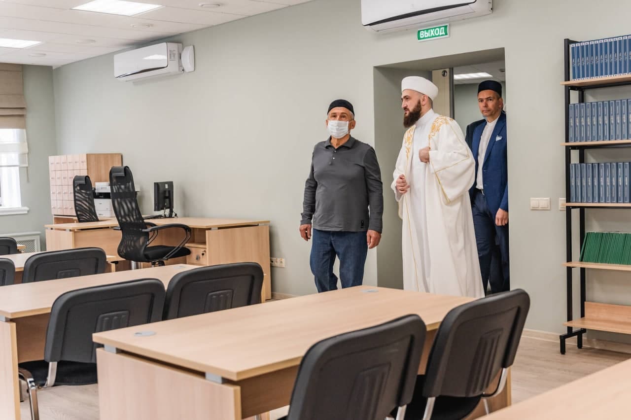 После богослужения Рустам Минниханов осмотрел отреставрированное здание медресе «Мухаммадия» в Казани. Экскурсию по обновленному зданию учебного корпуса медресе «Мухаммадия» после ремонтно-реставрационных работ провел муфтий Татарстана Камиль хазрат Самигуллин. Они осмотрели и обсудили техническое и методическое оснащение медресе, качество преподавания, систему учебного процесса.