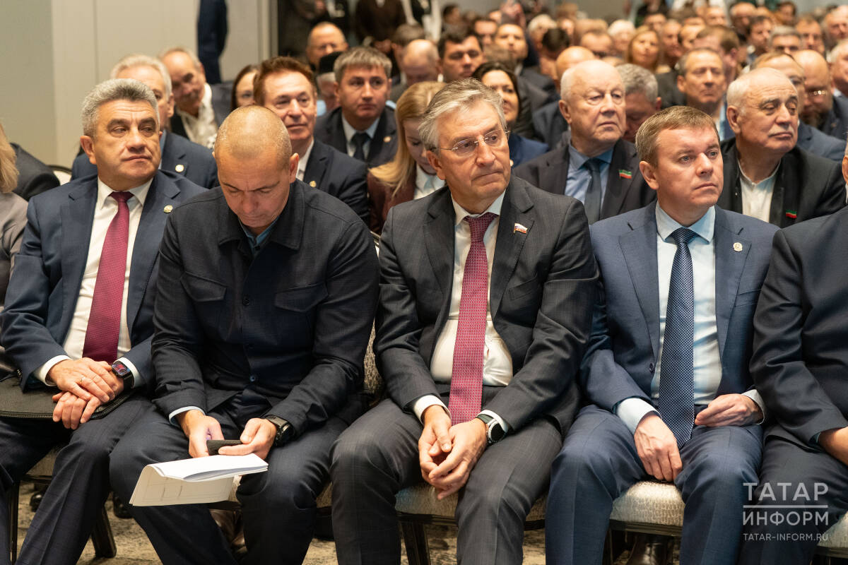 Открыл пленарное заседание Василь Шайхразиев, поприветствовав всех гостей на татарском языке. На языке Тукая и прошло по большей части всё мероприятие. На креслах президиума вместе с Раисом и заместителем татарстанского Премьера расположились руководитель Ульяновской организации татарских бизнесменов «Сембер» Эльмира Алиакберова и председатель Омского татарского национально-культурного центра «Иртыш» Тимур Алимбаев.